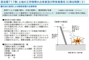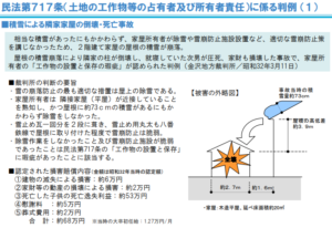 | 判決の要点 | 民法717条に基づき、管理不備がある場合は所有者が損害賠償責任を負う |