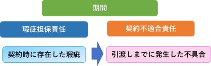 瑕疵担保責任の場合、瑕疵が発生した時期に限定がついており「契約時に存在した瑕疵」にしか適用されませんでした。