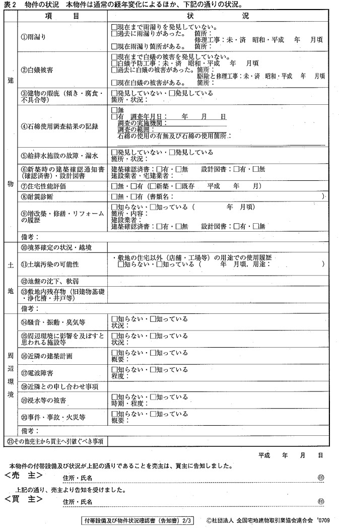 併せて、売主も「物件状況等報告書(告知書)※」に自らの知るすべての情報を記載しましょう。