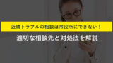 以下の記事では、近隣トラブルの相談先と対処法を解説しているので併せてご参照ください。