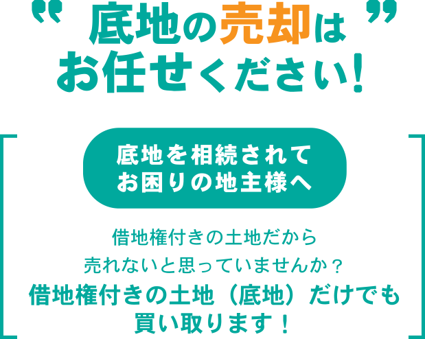 底地のみの取引は敬遠される傾向にありますが、他社で断られても一度当社へご相談ください。適正な査定をさせていただきます。