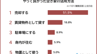 アンケート調査【やって良かった空き家の活用方法ランキング】経験者101人アンケート調査 相続した空き家をどう活用すれば良いのか、悩む人は少なくありません。今回は、自身や家族が空き家を相続した経験がある101人を対象に「やって良かった空き家の活用方法」を調査しました。アンケート調査